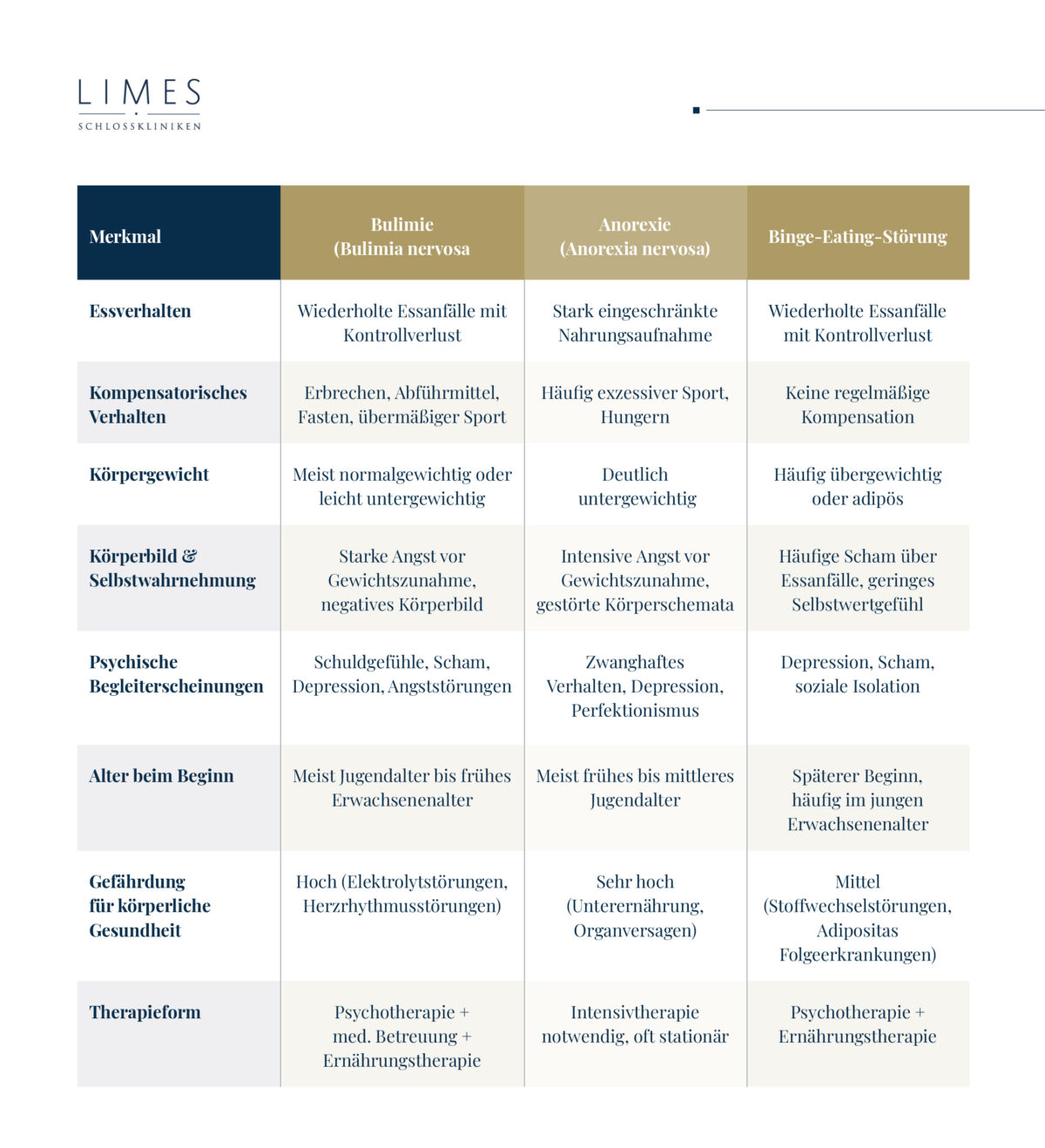 • Bulimie ist eine Essstörung mit wiederholten Essanfällen und kompensatorischem Verhalten.