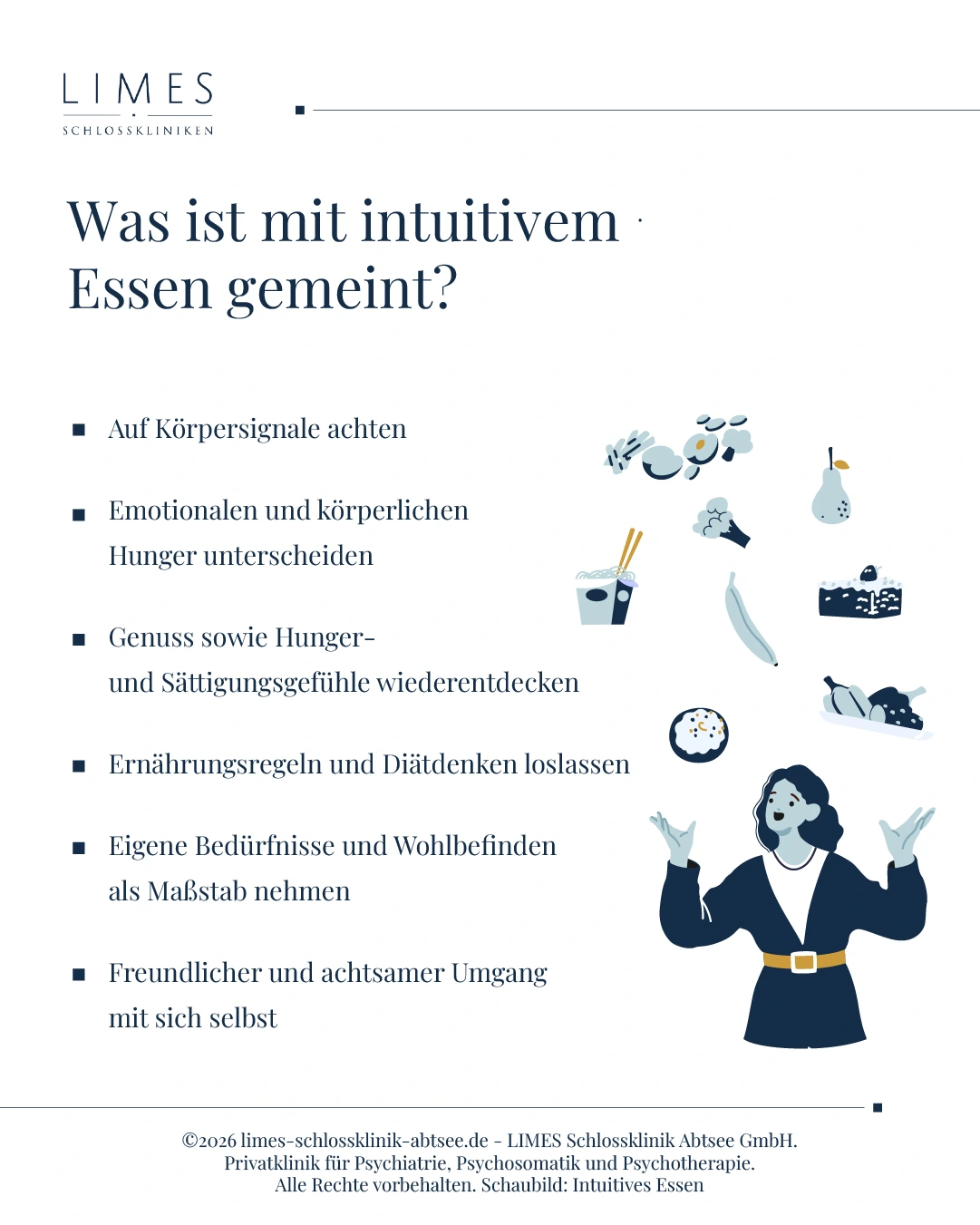 Obwohl intuitives Essen ein wertvoller Weg ist, stößt es bei schwerwiegenden Erkrankungen an seine Grenzen. In akuten Phasen einer Essstörung sind die körpereigenen Signale oft so stark gestört oder durch psychische Abwehrmechanismen überlagert, dass sie keine verlässliche Basis bieten. In solchen Fällen ist eine rein intuitive Vorgehensweise ohne therapeutische Begleitung nicht ratsam. Hier bedarf es zunächst einer Stabilisierung durch Fachpersonal, um medizinische Risiken auszuschließen. Der Übergang zum intuitiven Essen erfolgt dann meist als Zielschritt einer umfassenden Therapie.