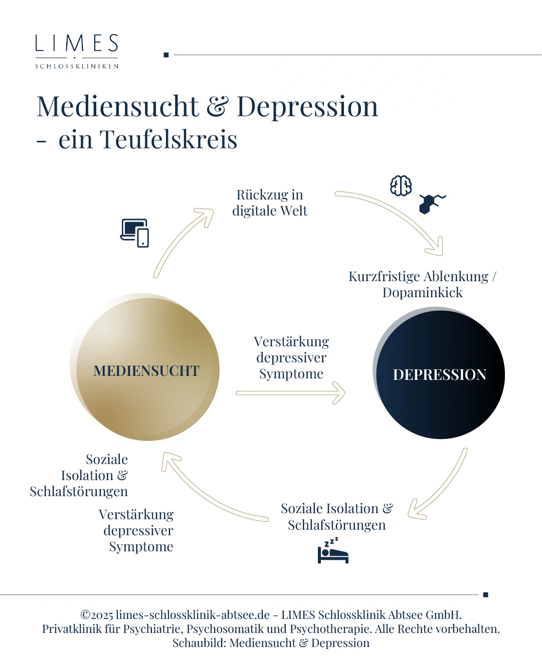 Das Zusammenspiel von Depression und Mediensucht ist oft das Resultat eines sich selbst verstärkenden Mechanismus, der junge Menschen immer tiefer in die Isolation treibt. Die Depression schafft eine Grundlage emotionaler Leere und Hoffnungslosigkeit, aus der die Betroffenen durch die Flucht in die digitalen Medien entkommen wollen. Der Medienkonsum wirkt kurzfristig als Ablenkung und vermeintliche Selbstmedikation, verstärkt aber langfristig die soziale Isolation und die Vernachlässigung realer Problemlösungen. Dieser Teufelskreis macht die gleichzeitige Behandlung beider Störungsbilder zwingend notwendig, um nachhaltige Besserung zu erzielen und jungen Erwachsenen eine stabile Zukunft zu ermöglichen.